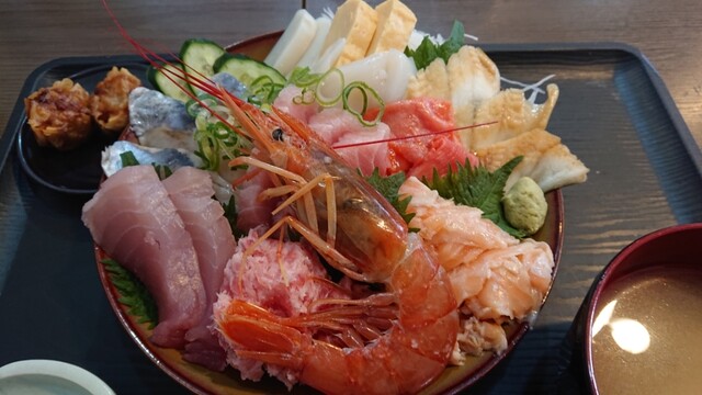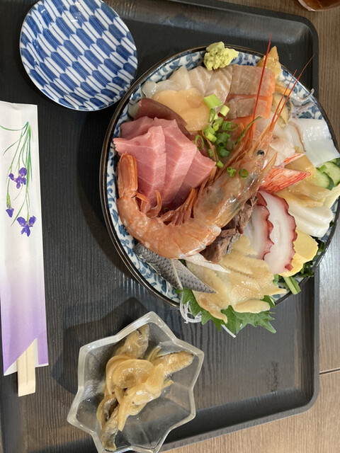 海鮮まかない丼のコスパ半端ない。鮮度良い魚がモリモリに盛られている。脂の乗った白身魚はいったいなんだったんだろう。激ウマでした。海の近くの店で食べる鮮度と豪快さがあり、なぜここに?という感じで、魚好きにはオススメ。