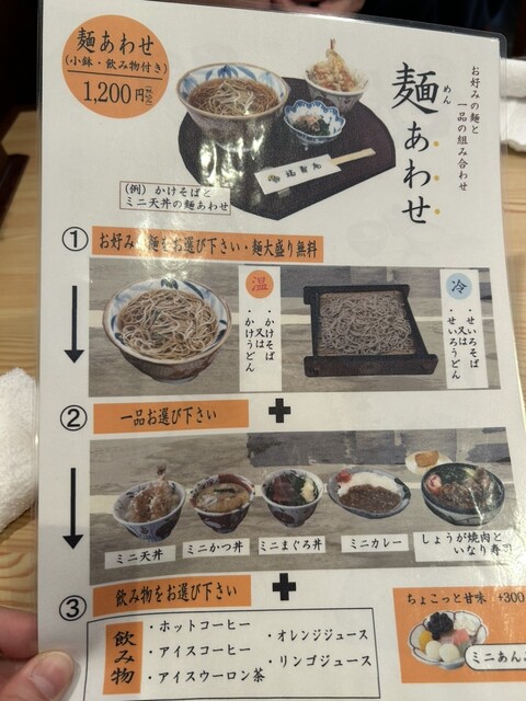 冬の天丼ミニそば(温)セット+食後の〆のデザートにおしるこ+アイスコーヒーをオーダー(笑)!!