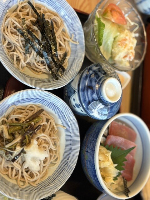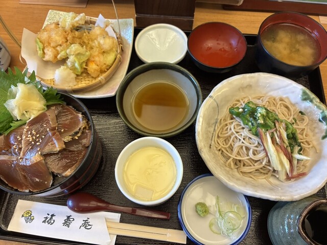 稲城市の老舗そば処「福寿庵」で、初夏の鰹てごね寿司膳を注文。脂ののった鰹が爽やかな酢飯とよく合い、季節を楽しめる一品でした。付け合わせのお蕎麦も、喉越しが良くすっきりとした味わいで、暑い日にぴったり。...
