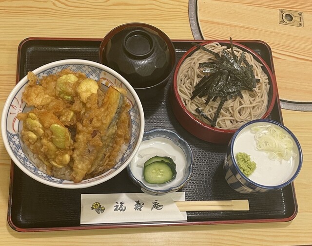 初夏のかき揚げ天丼のミニそばセットを注文しました!