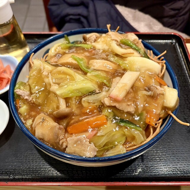 私はすごもりと言う揚げた蕎麦にあんかけがかかった料理を食べたのですが、具も盛り沢山で大変満足しました。