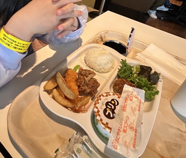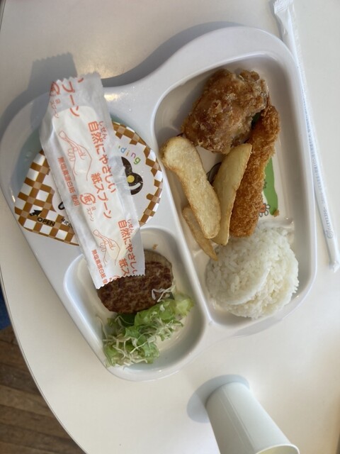 一番人気のメニューを頼みました。味は、よみうりランドらしく?すこし甘めの子供も食べれる味な気がしました。ビールも観光地価格w本当は「コンボセット」というフライドポテト・アメリカンドック・唐揚げのセット...