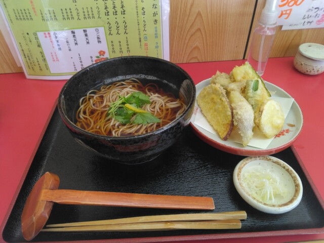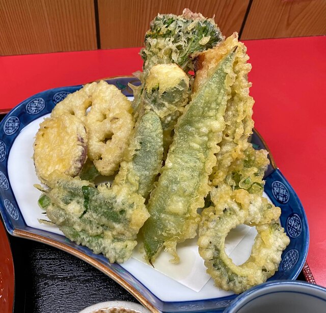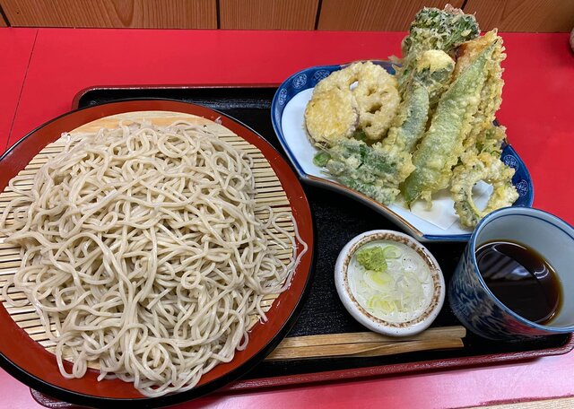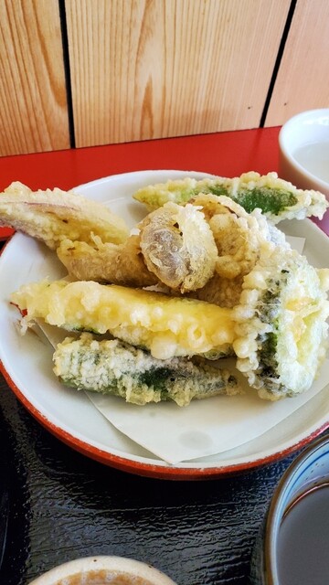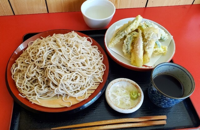 天ぷら8種と冷たいそばを注文。卓上のそば茶をいただきながら待っているとやってきました。あぁー、節のいい香り。天ぷらも美味そうだぞ。まずごぼう天、シャッキリ感...