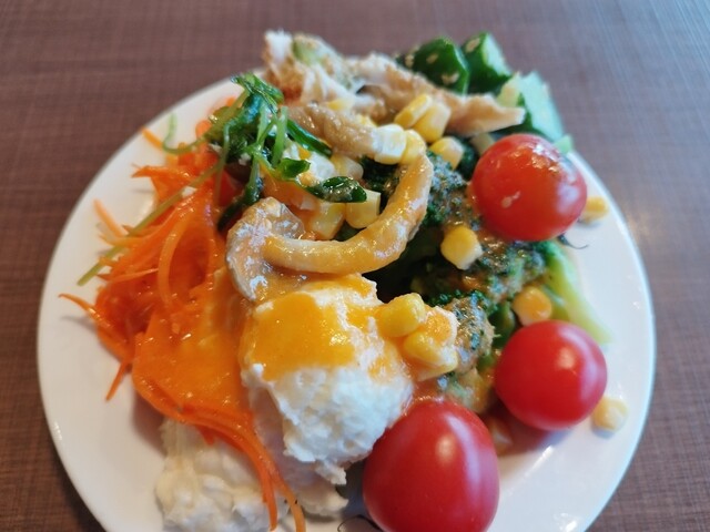 フレッシュで多彩な野菜が並ぶ「サラダバー」、