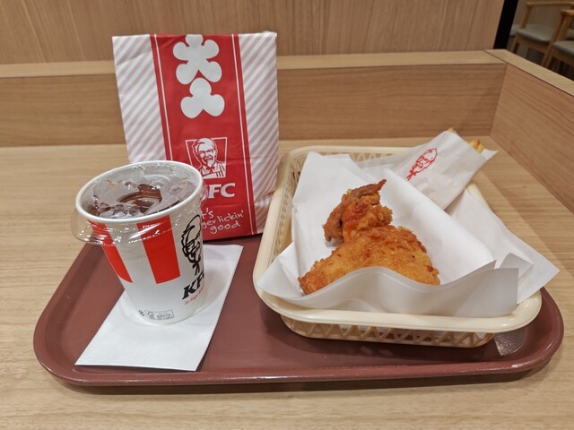 日曜の夜に来店。アプリの割り引きクーポンを利用してオリジナルチキンにポテトとドリンクの付いたセットを注文。それと店舗限定のフライドポテトSサイズ3つ分が入った大入りポテトが500円... 詳細を見る