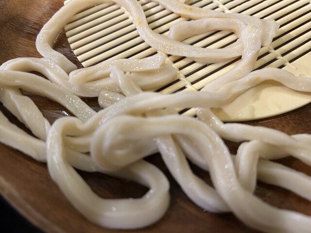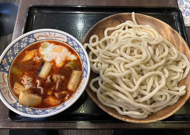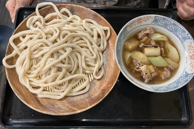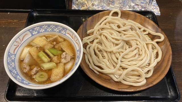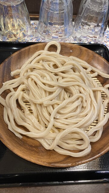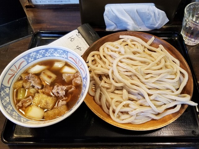 6分程で前から登場。見るからにゴワゴワした武蔵野うどん。肉汁の色は薄めだな。