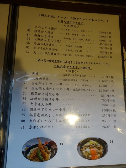 ランチタイムは、丼と蕎麦のセットなどのメニューが並びます。