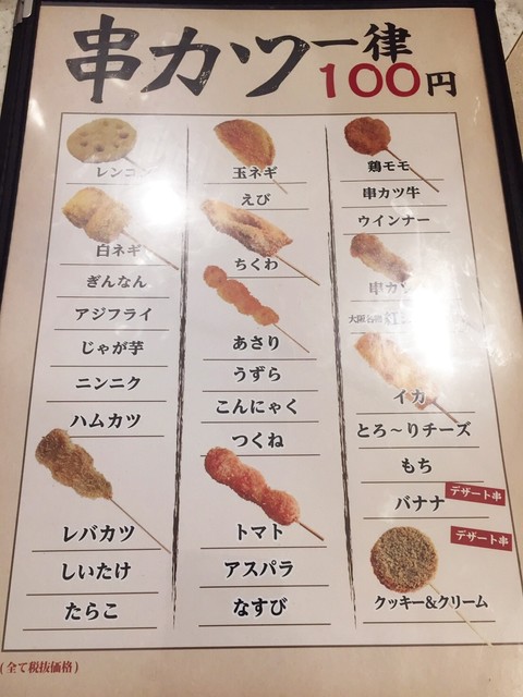 (串カツ豚/串カツ鶏モモ/紅ショウガ/白ネギ/うずら/アスパラ/