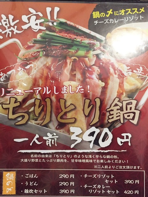 そして気になったメニューは、ちりとり鍋 390円という激安な鍋。