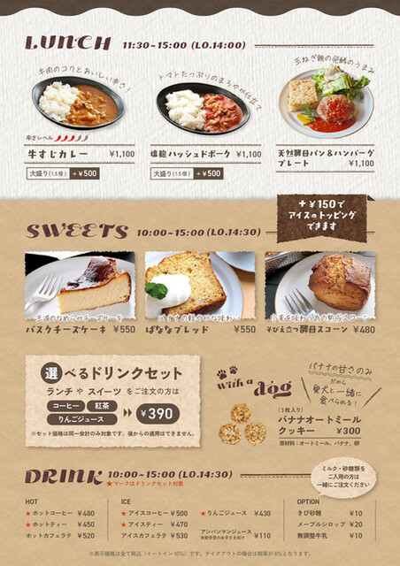 10:00 - 15:00(L.O. 料理14:00 ドリンク14:30)