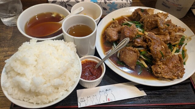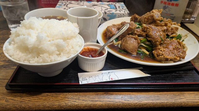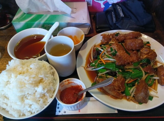 大将がたくさん食べて欲しいそうで、たっぷりなレバニラともりもりな白米が食べられます