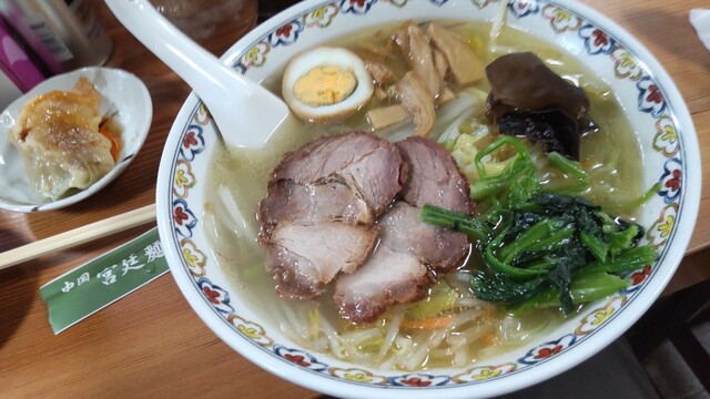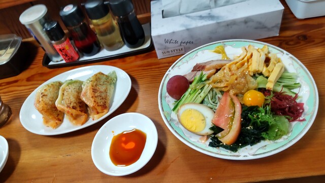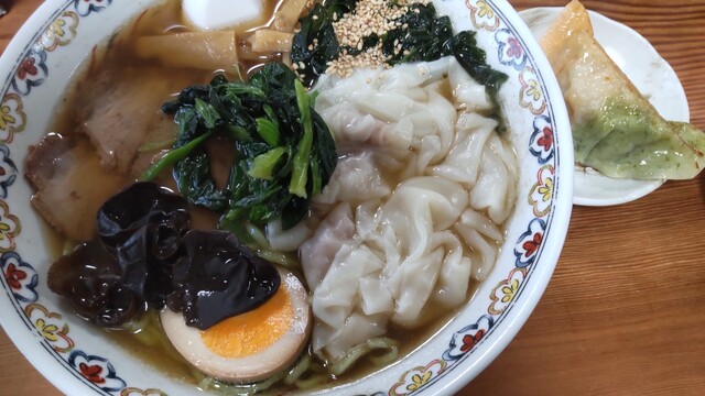以前から一橋学園駅近くの店ということで知ってはいましたが未食でした。この日はちょうどこのあたりで昼食タイムとなりましたので,やってきました。地図上の印象とは違って,住宅地の中に隣のうどんやと共にひっそりと建つ感じです。入店して空いているカウンターに座って壁メニューを拝見。どうやら卓上にメニューはないようです。中国麺が醤油ラーメンにあたるようで同列にワンタン麺がありましたのでそれを発注しました。麺は...