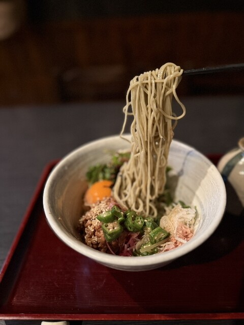 日本各地の厳選した蕎麦の実を自家製粉し、日々3~4種 産地、品種、打ち方等風味の違う蕎麦を楽しんで頂けたらと思います。そばの実は勿論、打ち粉も国産100%です。蕎麦の汁三種全て完全無化調、遺伝子組み換え材料不使用、上白糖不使用。蕎麦は身体に優しい自然食物です。魚は豊洲直送、酒も色々ございます。御子様から御年輩の方まで召し上がれる物を少しずつですが御用意致しております。5名様以上はご予約のみです。