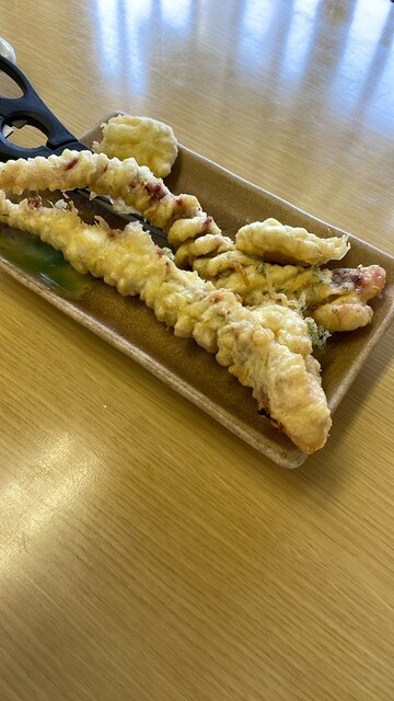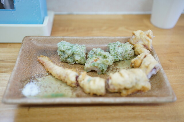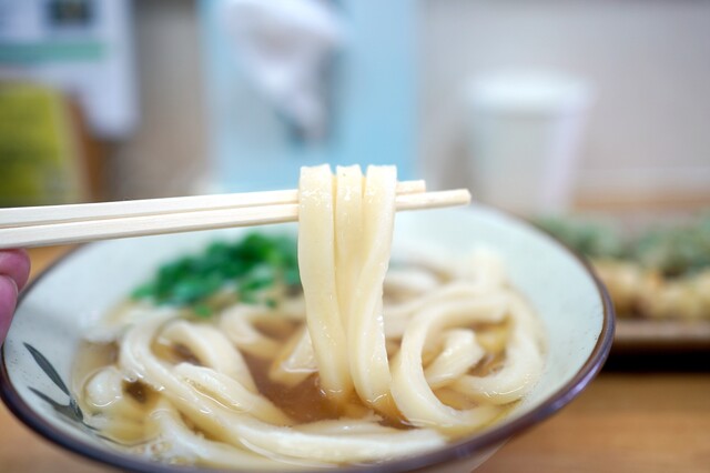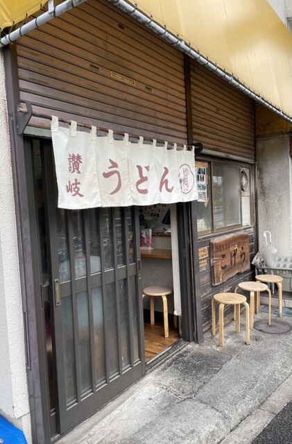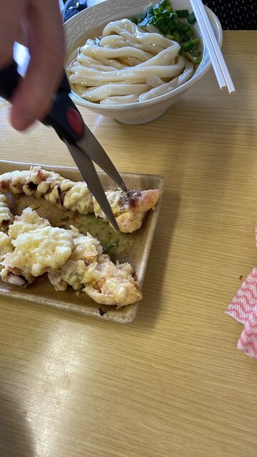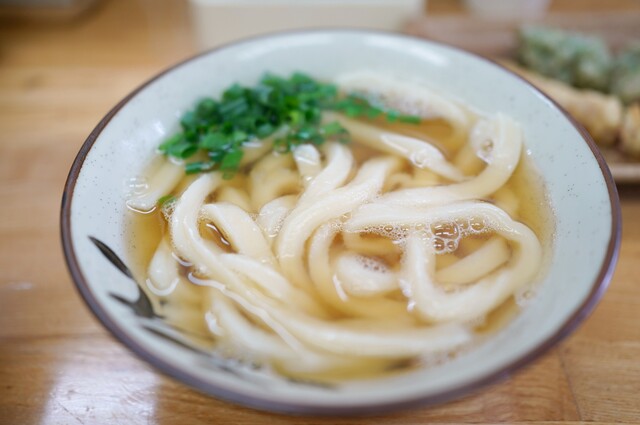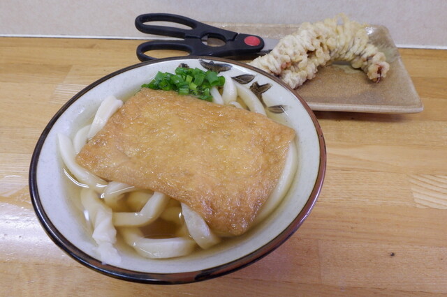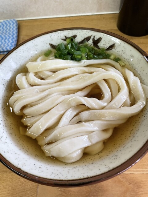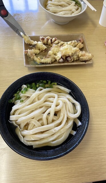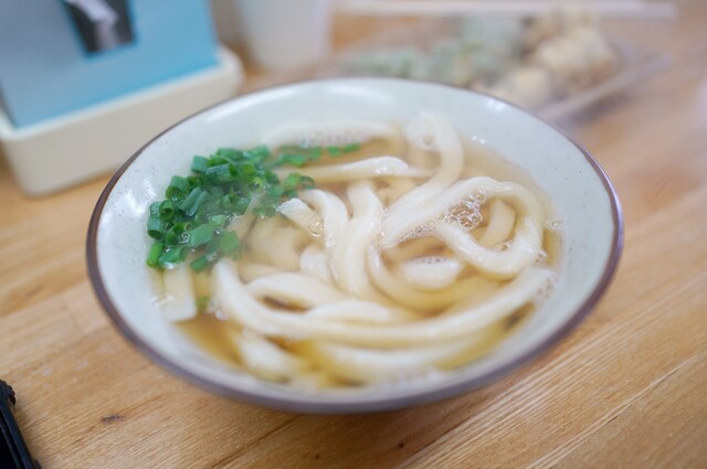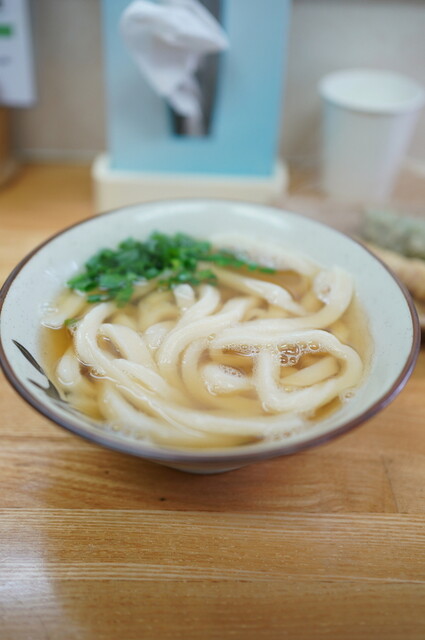 年末年始の平日10:30に1名で訪問。公式SNSでは11:00開店との案内があったが、到着時点ですでに営業しており、店内は満席、店外に6名ほどの並び。並び始めてから約20分で入店できた。 【注文内容】 ・かけうどん 小 ひやあつ(300円) ・ゲソ天(100円) ・ちくわ天(100円) ... 詳細を見る