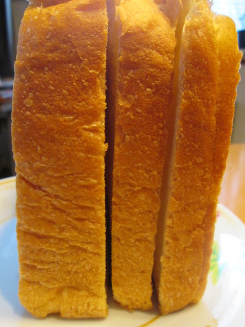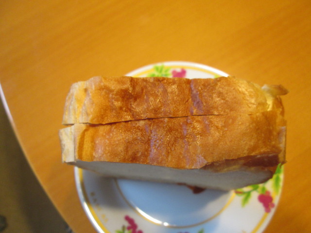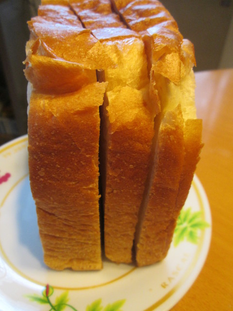三か月後、訪問したら、店内の棚にまた斜め切りのもの発見!ここの食パンはそういうものなのね?
