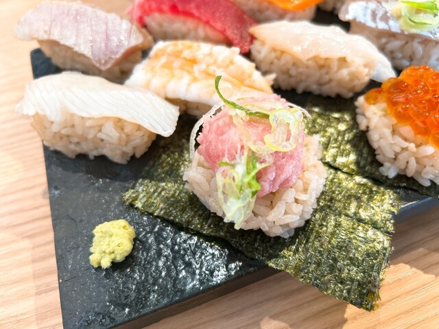地の地酒が愉しめるのも特徴で、寿司に合う逸品を厳選。またランチ、コース、テイクアウトもご用意しました。宴会も大歓迎ですので、お気軽にご利用ください!