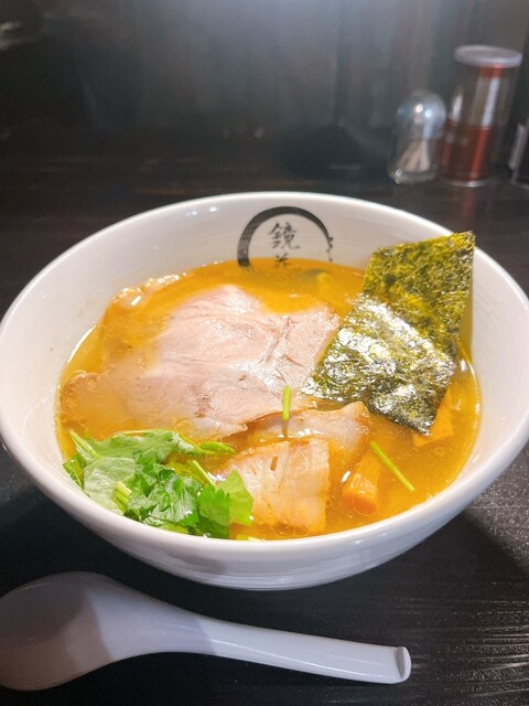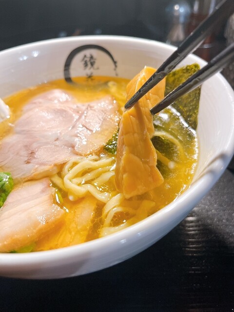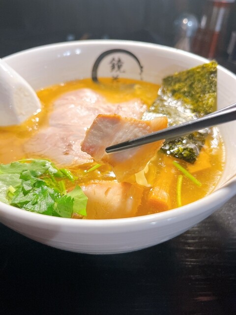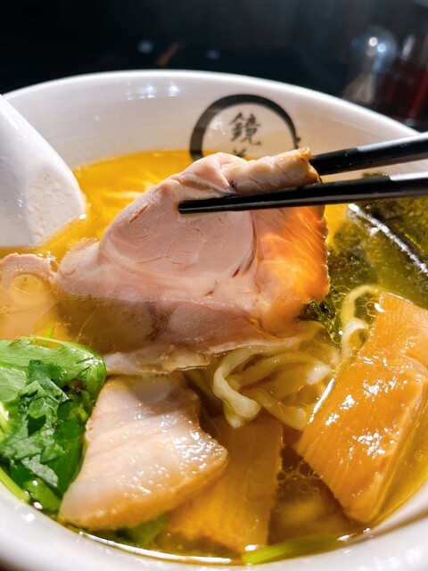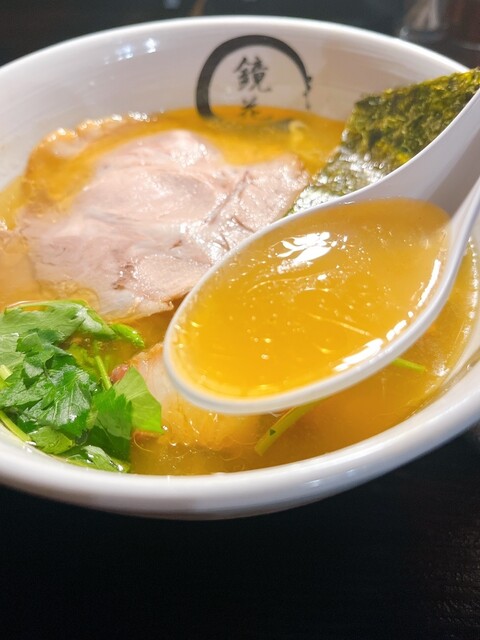 鏡花のラーメンは、厳選素材の旨味を2日間かけて積み上げた「重層式スープ」が特徴で、奥深い味わいです。