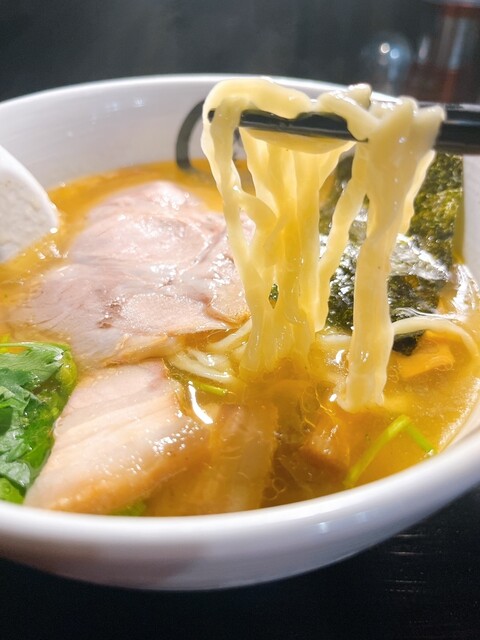 食べログでの評判を見て、行ってみたのですが、本当に素晴らしいお店でした。塩の太麺、醤油の細麺を妻とシェアしていただきましたが、どちらもすごく美味しい。太麺は幅太のちぢれ麺で太過ぎず、細麺もしっかりした麺だし、次回行くときどちらの麺をいただくか迷う。スープもどちらも美味しかったですが、醤油がとびきり美味しかったかな。塩と醤油のほか、鶏白湯との3種類から選べるので、今度はこちらも試してみたい。店内が落... 詳細を見る