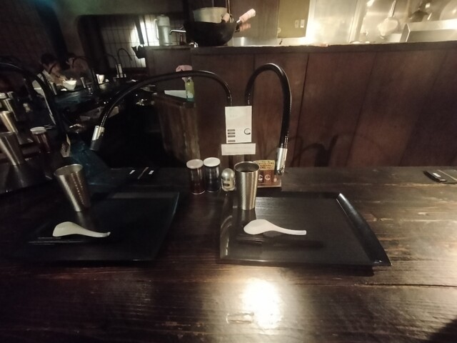 「正義」・・・陰日向、裏表なく正しい事を正しく公正に実践していく事。 「愛情」・・・食材に対して、お客様に対して、そして仲間に対しての愛情です。 「安心」・・・期待を裏切らないこと、味の安定クオリティの維持向上に努める事。 ラーメンはスポットライトに照らされ、店内はおしゃれで落ち着いた雰囲気の空間です。