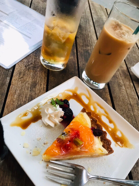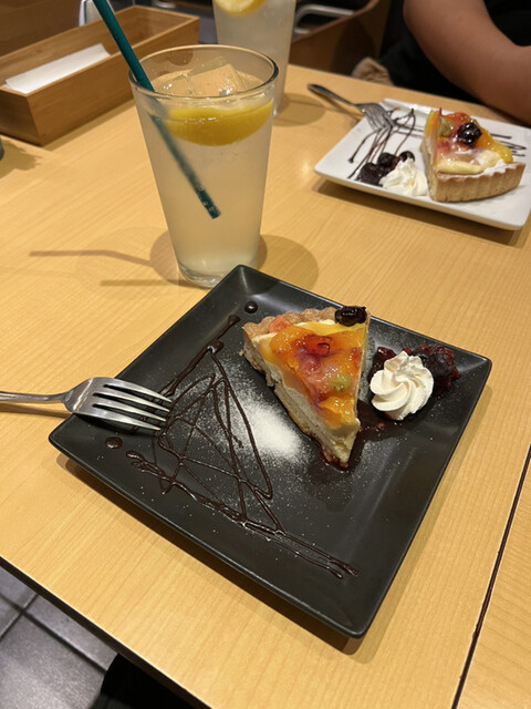 フルーツタルトはちょうどいい甘さ加減に、フルーツの甘味と酸味がちょうど良かったです。ソーダレモネードも爽やかで美味しかったです。