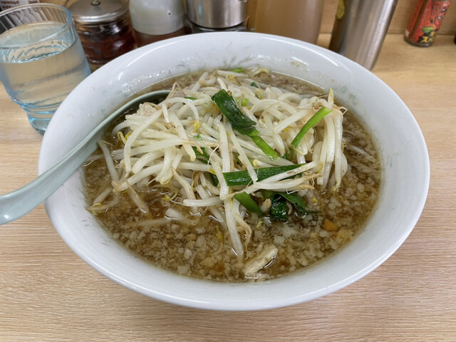 初来訪。もやしラーメン+半チャーハン1,050円。もやしラーメンはニンニクが効いた具材で、もやしがシャキシャキしてて美味しい。何よりスープがアチアチで最高。半チャーハンは半じゃない量でwぱらりとしつつしっとりしたなかなか絶妙な炒め具合。いやぁ、美味かった。機会があったらまた来たいなぁ。おばあちゃん、元気で続けてねm(_ _)m