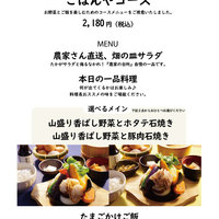 毎日届く農家さんからの変わった野菜、おいしすぎる野菜たち。 青梅の川鍋さんのさくらたまごのたまごかけごはんが絶品!お腹も心もほっこりと満足する店です。 お座敷席もご用意、お子様連れのご家族やママ友会にいかがですか。