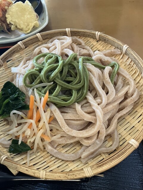 竹膳 1500円 休日のお昼、天気が悪いせいか 満席にはならないくらいの感じ。 お店の壁には、至る所に野球の グッズがディスプレイされてます。 鯉が多めだけど巨人、竜、獅子から 高校野球まで幅広です。 食事の方は、肉汁うどんと天ぷら。 うどんは全粒粉で武蔵野うどんに あ... 詳細を見る