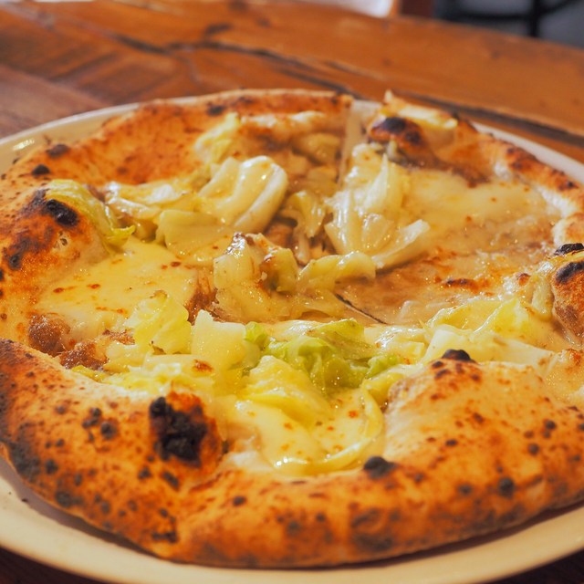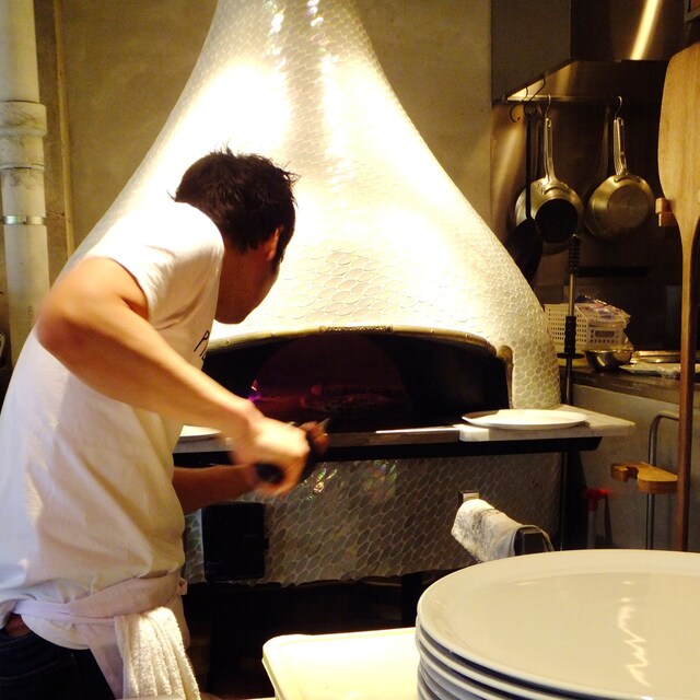 本場ナポリから取り入れた薪窯でつくるピッツァは、外パリパリ、中はもっちりの仕上がりです。