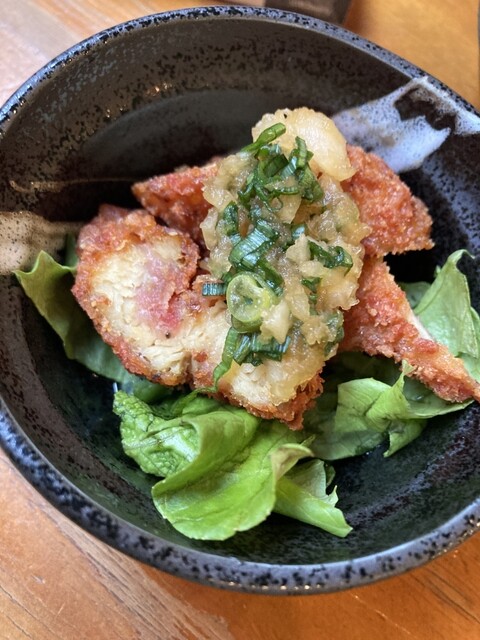 自家製の油淋鶏ソースが絶妙です。ビールとの相性も最高っ!