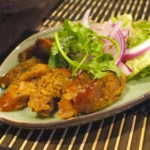 丸鳥の半分をカレーベースのタレに漬け込みじっくり焼き上げた一品。