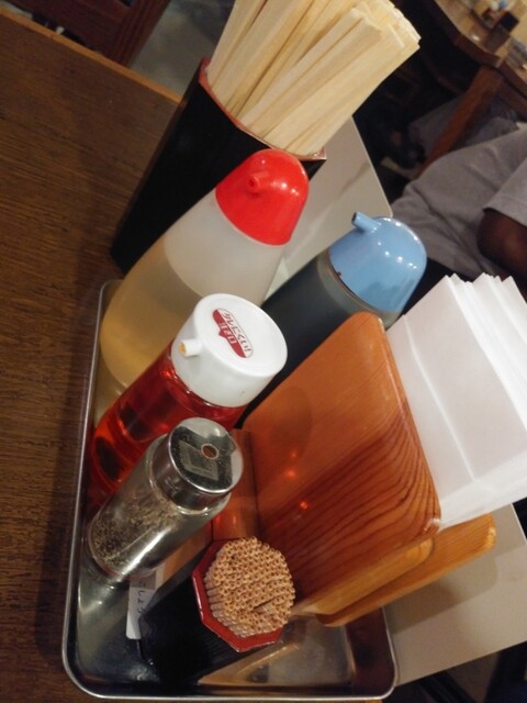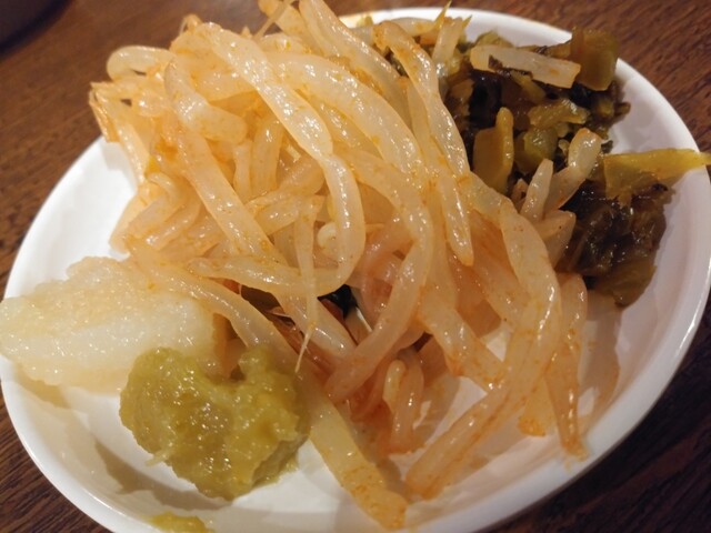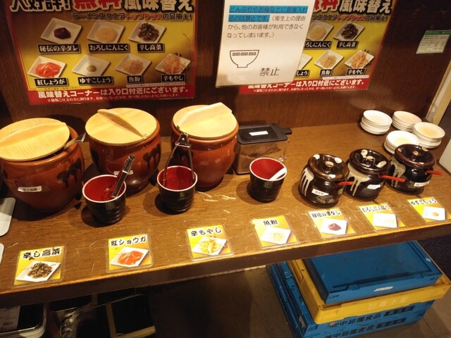 *無料薬味カウンターから辛し高菜、辛もやし、おろしにんにく、ゆずこしょう
