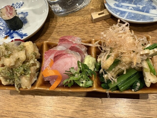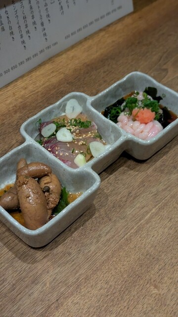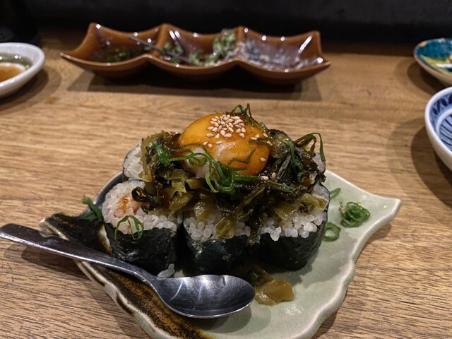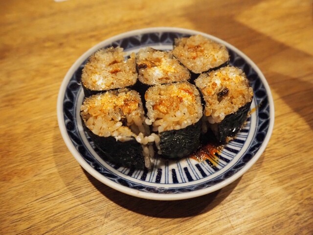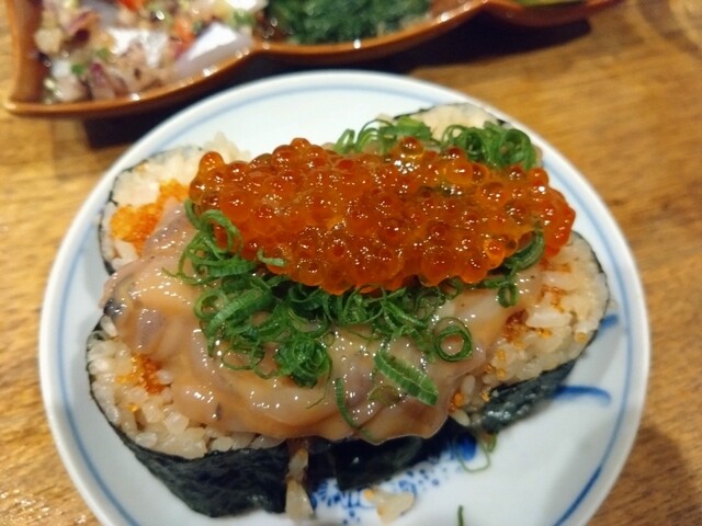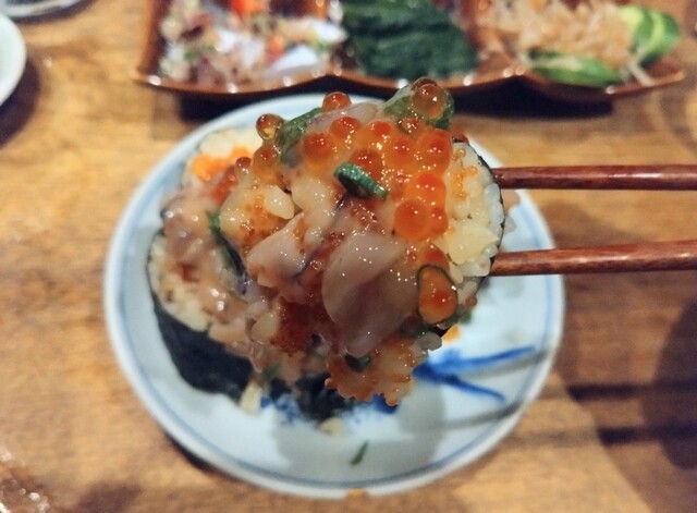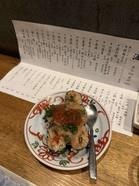 立川駅至近にある日本酒とそれに合わせたあてが美味しいお店です。呑兵衛の心をくすぐるメニューの痛風巻きが目に入って早速注文しました。いくら、とびっこ、塩からとプリン体たっぷりのメニューで、それ合わせての...