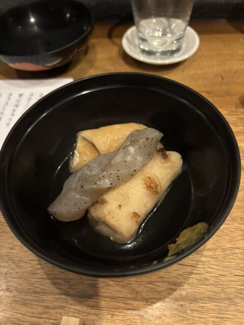お通しはお出汁が優しいおでん!柚子胡椒を添えて。(おで...