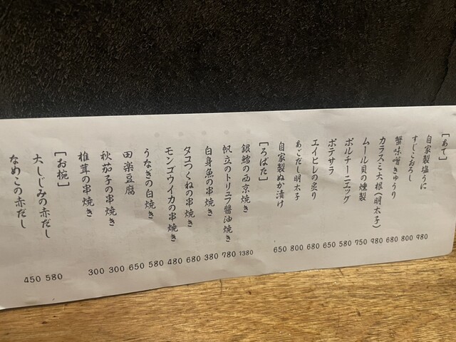 お通し450円(税込)、サービス料なし |