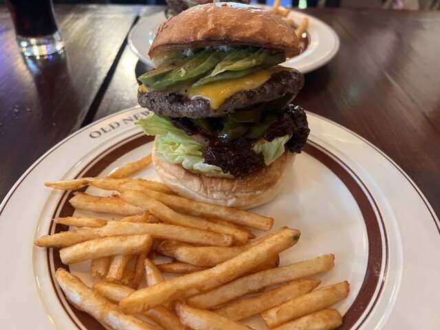 オールドニューバーガーをいただきました!口コミを見て、ボリューミィとは聞いていましたが、予想以上でした⋯。