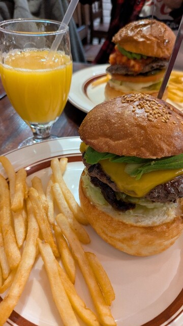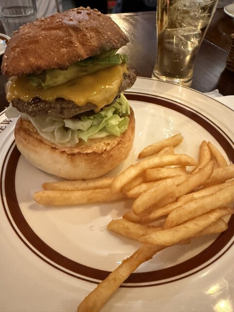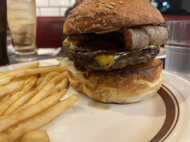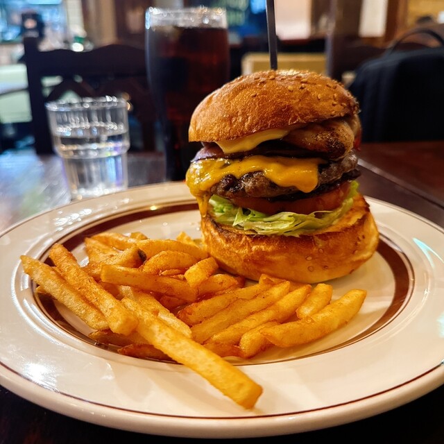 ハンバーガーの百名店、初訪問です。店に入った瞬間、「ここは間違いない」と直感しました——欧米人の客が2組、美味しそうに食べているのを見て、さらに確信。内装も映画に出てくるようなアメリカンなテイストで、...