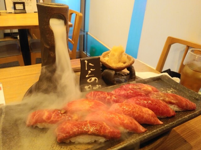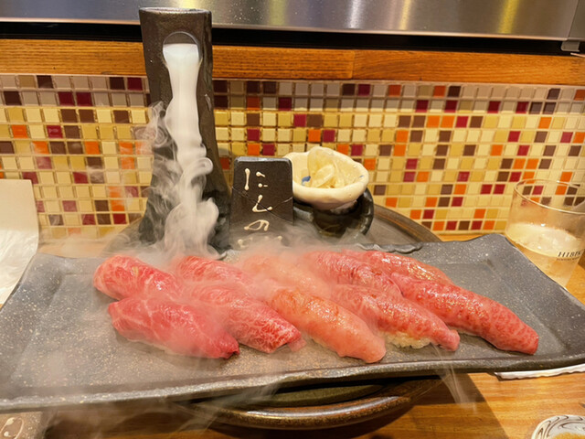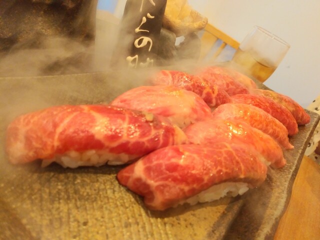 精肉店が営んでいるからこそ実現する、厳選の肉寿司・肉刺しと溶岩焼きをはじめとした、上質なお肉を楽しめるのが当店の特徴です。
