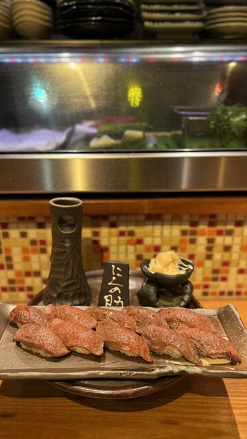 肉寿司、肉刺し、溶岩焼きなどが人気のおしゃれな焼肉店で2...
