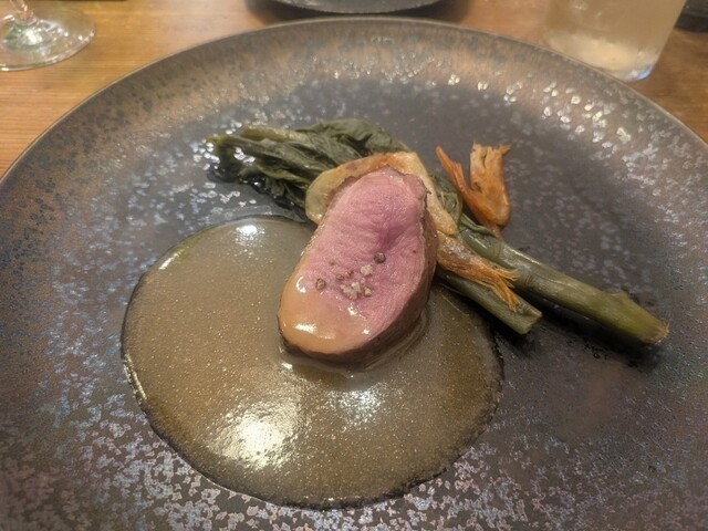 ドリンク コース アラカルト の説明を満席の店内にも関わらず ホールを1人で回すサービスの方が丁寧かつ要領よく説明してくれる。 その説明でアラカルトでは お目当ての鴨のロッシーニ風はオーダー出来ないことを知る。 コースをオーダーした場合のみ追加ができる一皿のようだ。 では... 詳細を見る