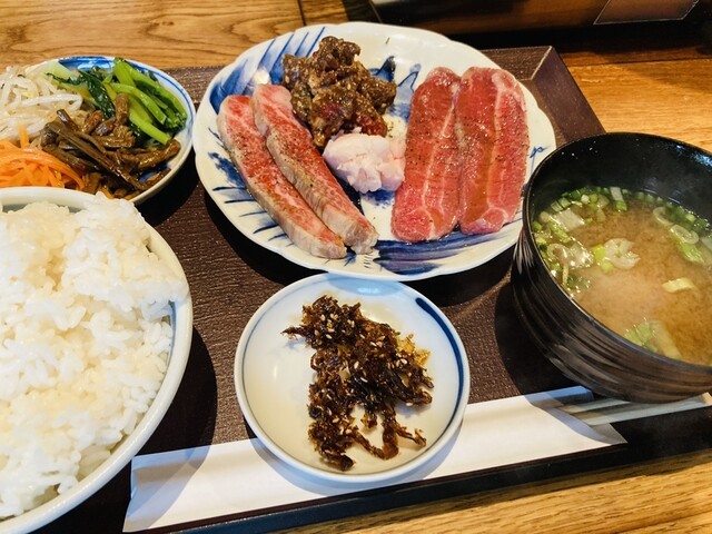 今回私が頂いたのは、、、 「牛タン切り落とし定食」 「赤海老の青唐醤油漬け」 「ランプ」 です! 「牛タン切り落とし定食」 にはナムルとおしんこ、赤だし... 詳細を見る