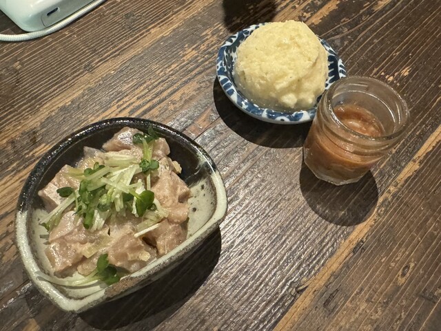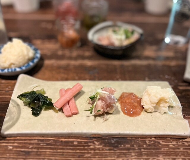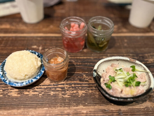 立川のガレーラ内に入っていると聞き、初訪問。ガレーラでも変わらず雰囲気あります。デフォルトで七輪がテーブルにおいてあり、注文したものを炙れるようになっています。写真はエイヒレですが、そのほかホタルイカやサケトバもいただきました。どれも美味しい!日本酒もたくさんあり、おつまみもよく合います。小鉢は2種... 詳細を見る