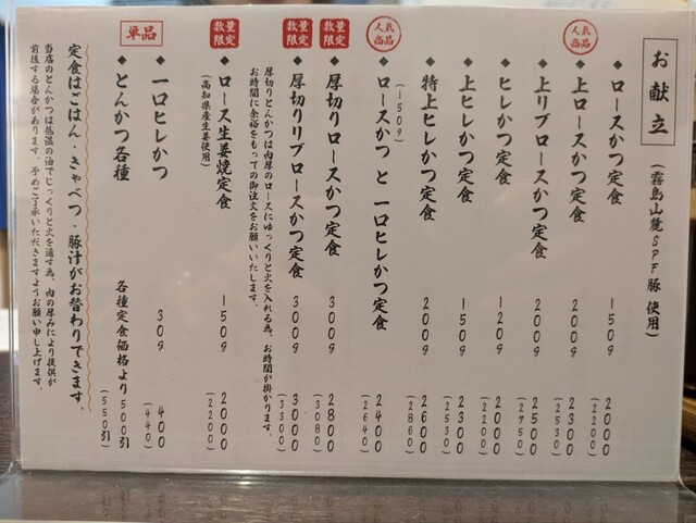 厚切りロースは驚くほどジューシーで、衣はサクッと軽やか。豚の旨味がしっかり感じられ、脂も甘い。定食のご飯や味噌汁も丁寧な味で、満足度高め。落ち着いた店内でゆっくり味わえる、立川でトンカツを食べるなら外...
