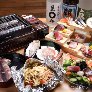 「【120分飲み放題付き】豪華海鮮コース・極み◆お刺身盛り合わせや海鮮サラダ、牡蠣・ホタテ・赤海老などの浜焼、〆のミニ海鮮丼を堪能!」がおすすめです。