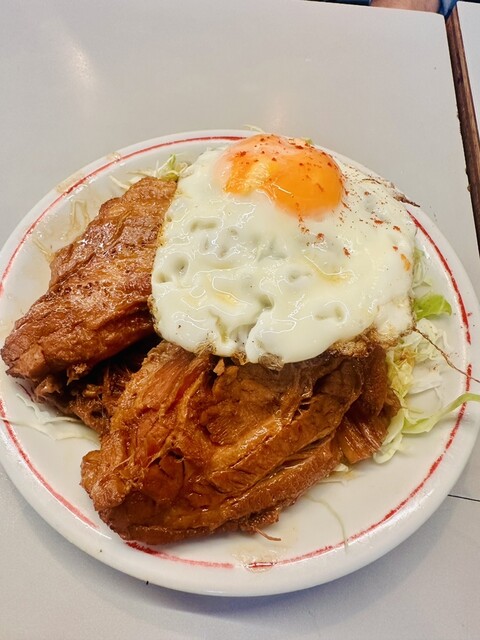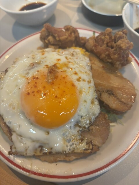 チャーシューエッグはランチの定食のメインとしても選べます。確かに白米が食べたくなる重量...