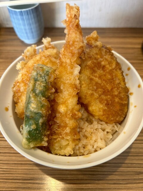 オーダー:味彩天丼¥1300+大盛¥150 海老天2本、なす天、いんげん天、カニカマ天、玉子天 残暑の日曜日、特にイベントがある訳ではない高幡不動尊のランチタイムは、参拝客... 詳細を見る