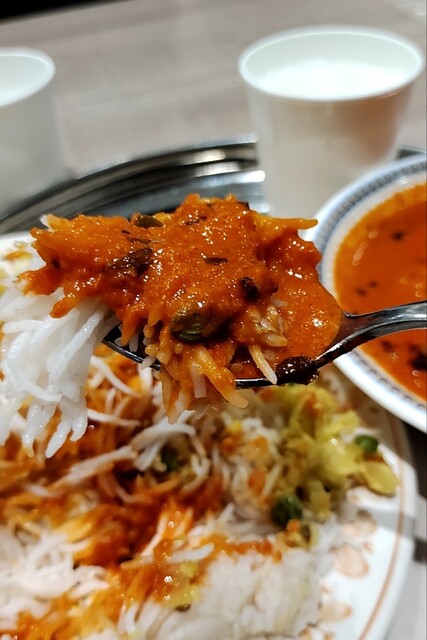 マサラドーサセット 1112円 チキンビハリティッカ 275円 ドーサは定期的に食べたくなります。写真では分かりませんが、プレーンドーサとは異なり、ドーサの中にジャガイモのスパイシーな炒め物が入っています。というか、付け合わせのサンバル(豆と野菜の南インドの大定番、味噌汁的なカレー)の存在感がかなり大きかったりもします。ぶっちゃけ大好きです。ミントチャトニも美味。 ビハリチキンティッカはかな... 詳細を見る