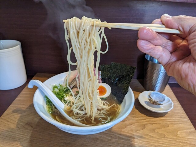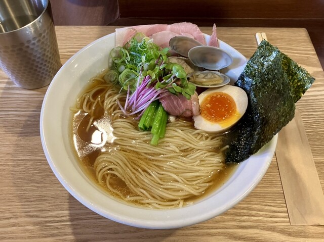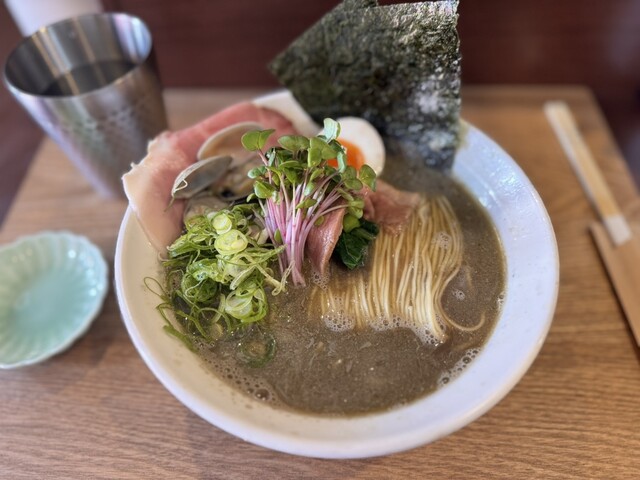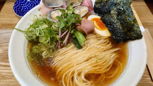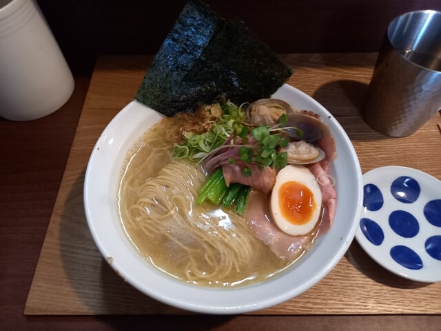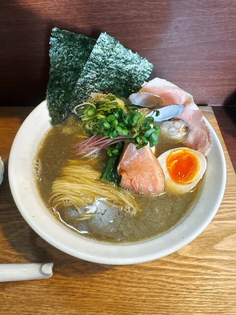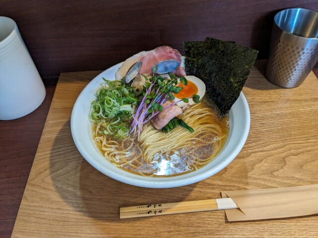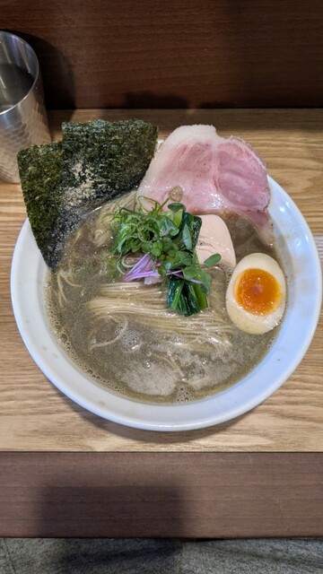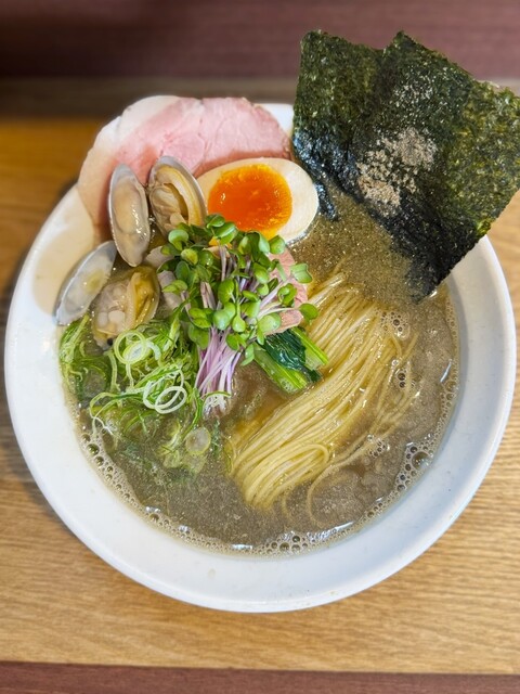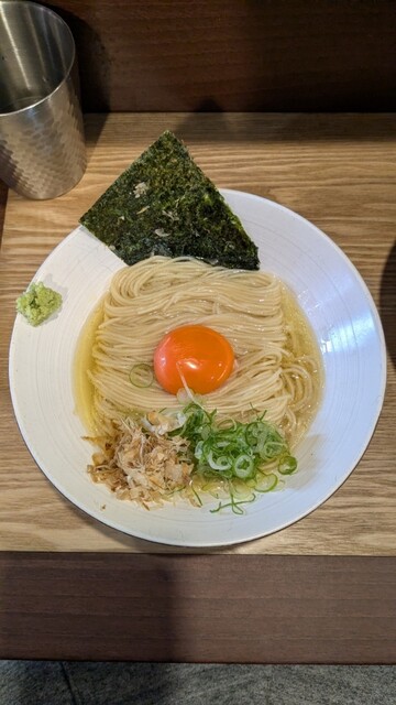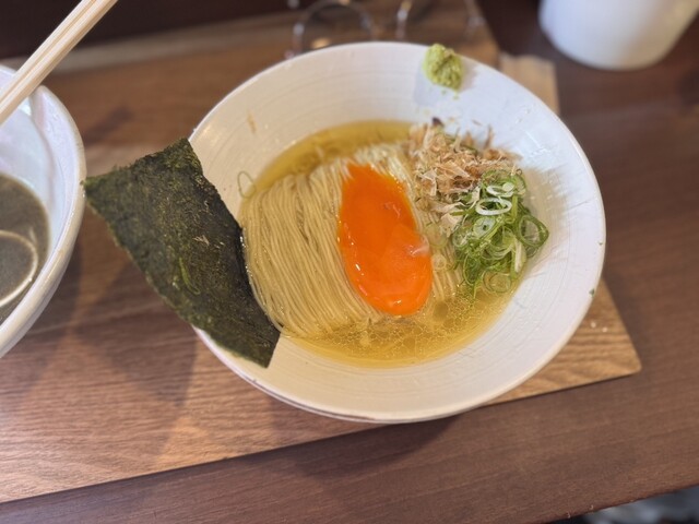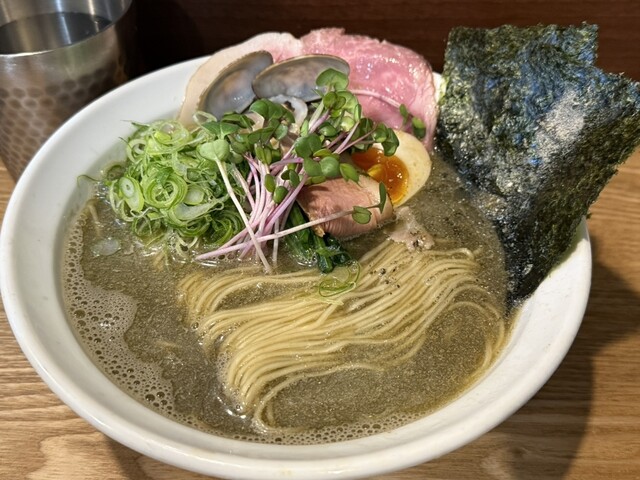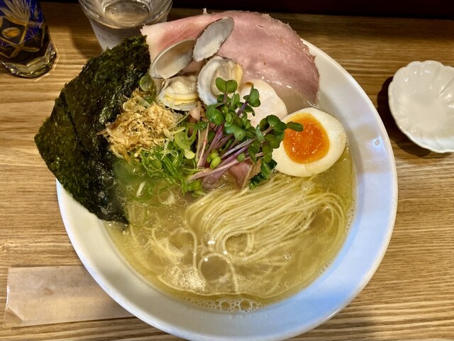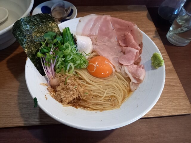 2杯目限定のこちらももちろんいただきます。1杯目醤油だったのでこちらは塩にしたが、1口目から貝出汁がガツンと来てめちゃウマ。わさびの味変もよく効いていて、1杯目も2杯目も完飲。...