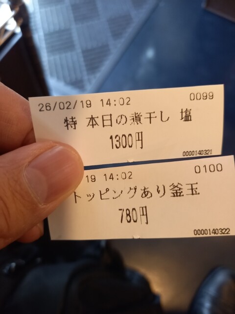 14時25分頃に煮干し塩が着丼。魚...