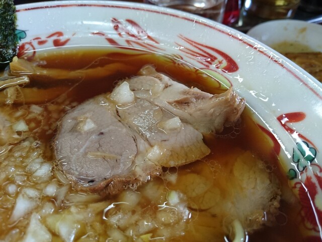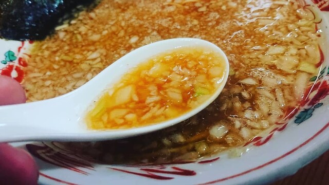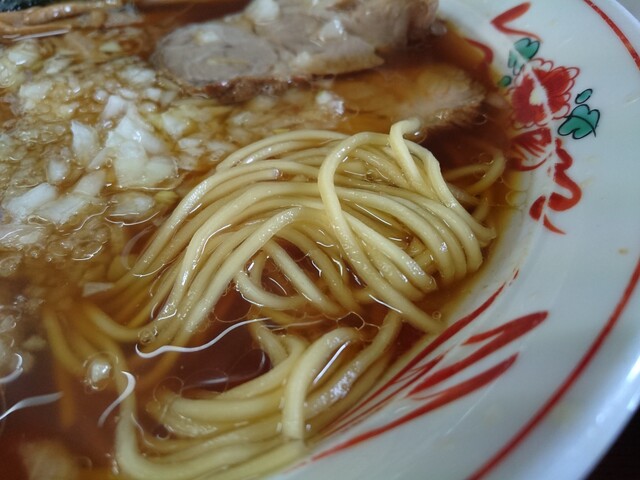 刻み玉ねぎ、醤油スープ、表面に脂を浮かす。 これが八王子ラーメンの定義! 是非食べて頂きたいお店♪
