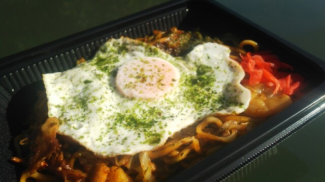 焼そばは大阪より取り寄せのモチモチ超太麺、特製ソースの絡みが最高です。